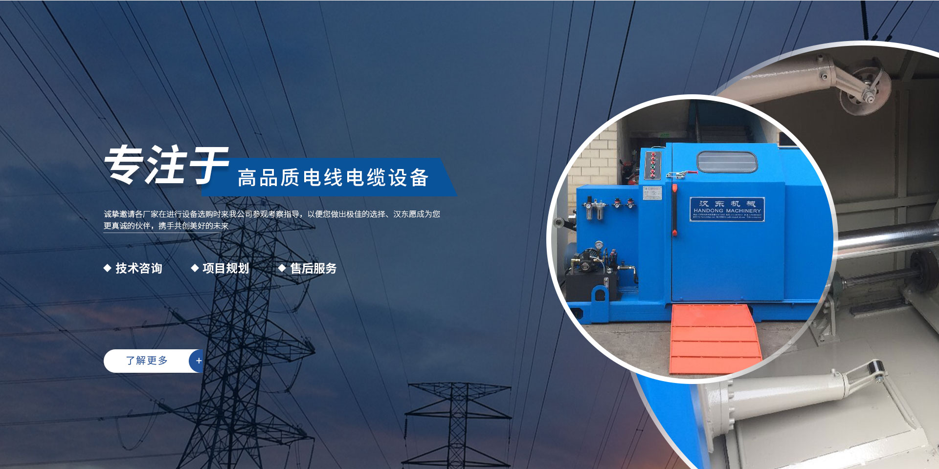 常州漢東機(jī)械始創(chuàng)于2006年,是集電線電纜機(jī)械設(shè)計(jì)、開發(fā)、制造、安裝、調(diào)試為一體化的高科技企業(yè)。本公司自開業(yè)以來,積極引進(jìn)日本,歐美等國外電線電纜設(shè)備之先進(jìn)技術(shù),先后成功推出了達(dá)到行業(yè)先進(jìn)水平的電線電纜設(shè)備,主要產(chǎn)品有擠出、繞包、束線、成纜等電線電纜固定設(shè)備。在提供系統(tǒng)設(shè)備的同時(shí),還向客戶提供售前技術(shù)咨詢、項(xiàng)目規(guī)劃、以及售后服務(wù)。我公司本著“以人為本、科技先導(dǎo)、用戶為上”的宗旨,為客戶提供牢靠的產(chǎn)品與省心的服務(wù)。漢東愿成為您更真誠的伙伴,攜手共創(chuàng)美好的未來! 了解更多+
